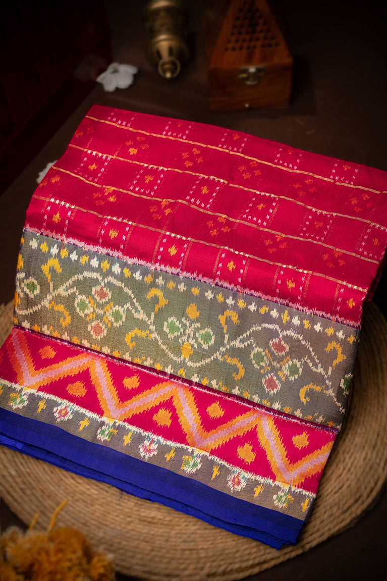 Mandir Multi-Colour & Red Patan Patola Ikat Saree