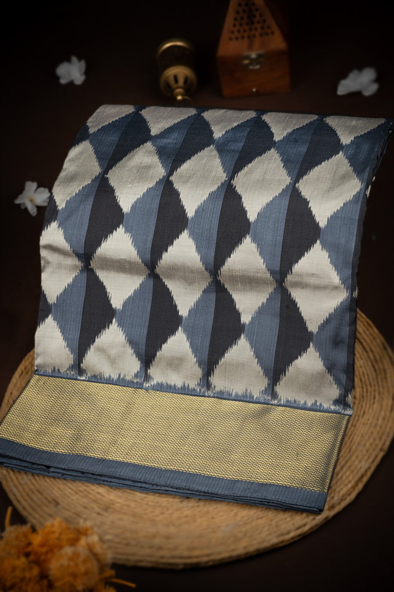 Mandir Navy Blue & Navy Blue Ikat Ikat Saree