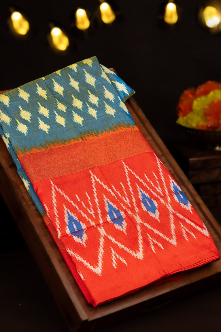 Varamahalakshmi Orange & Royal Blue Ikat Ikat Saree