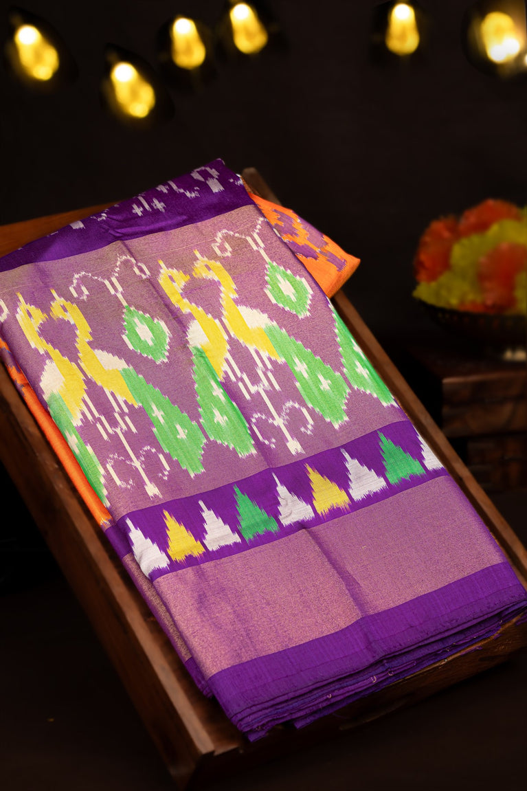Varamahalakshmi Purple & Olive Green Patola Ikat Saree