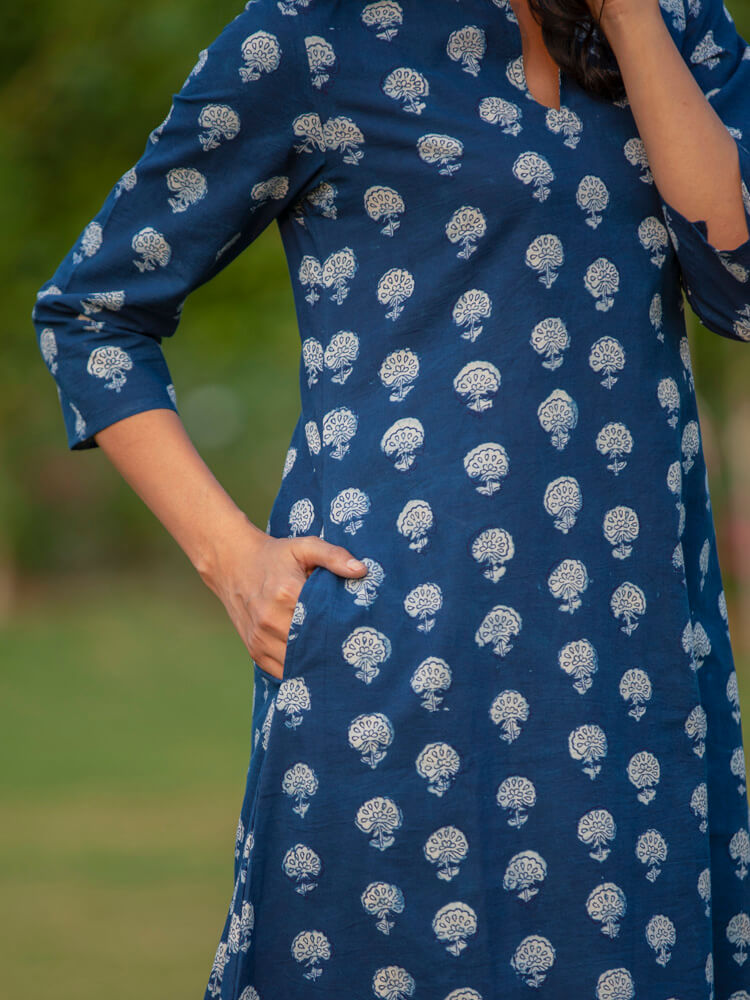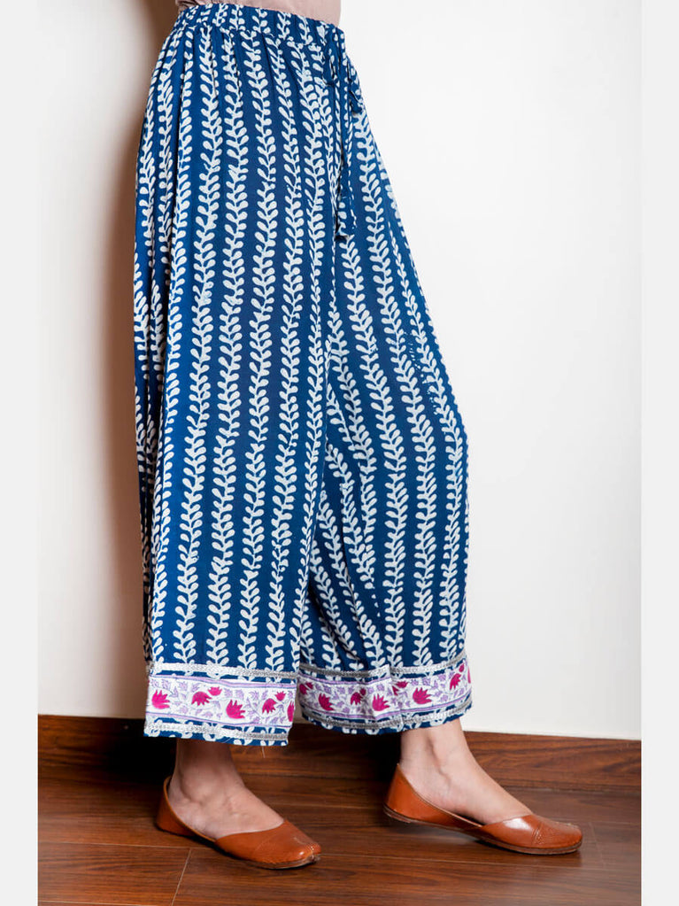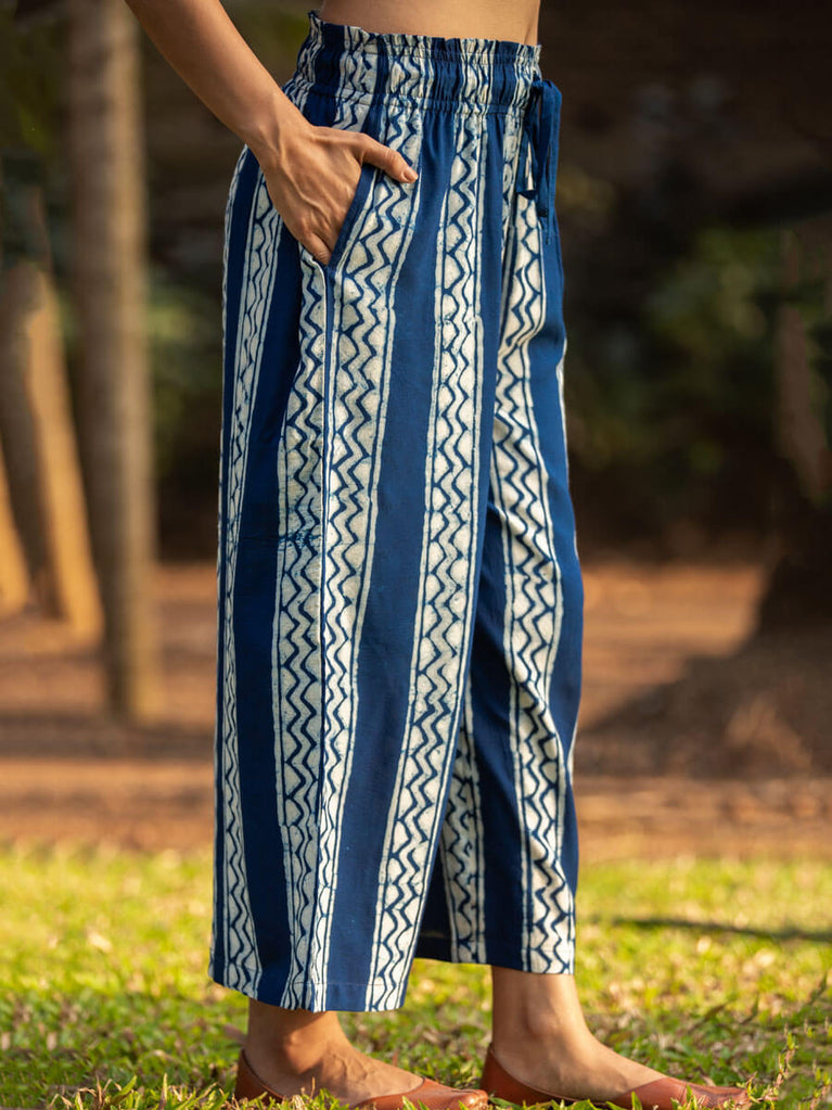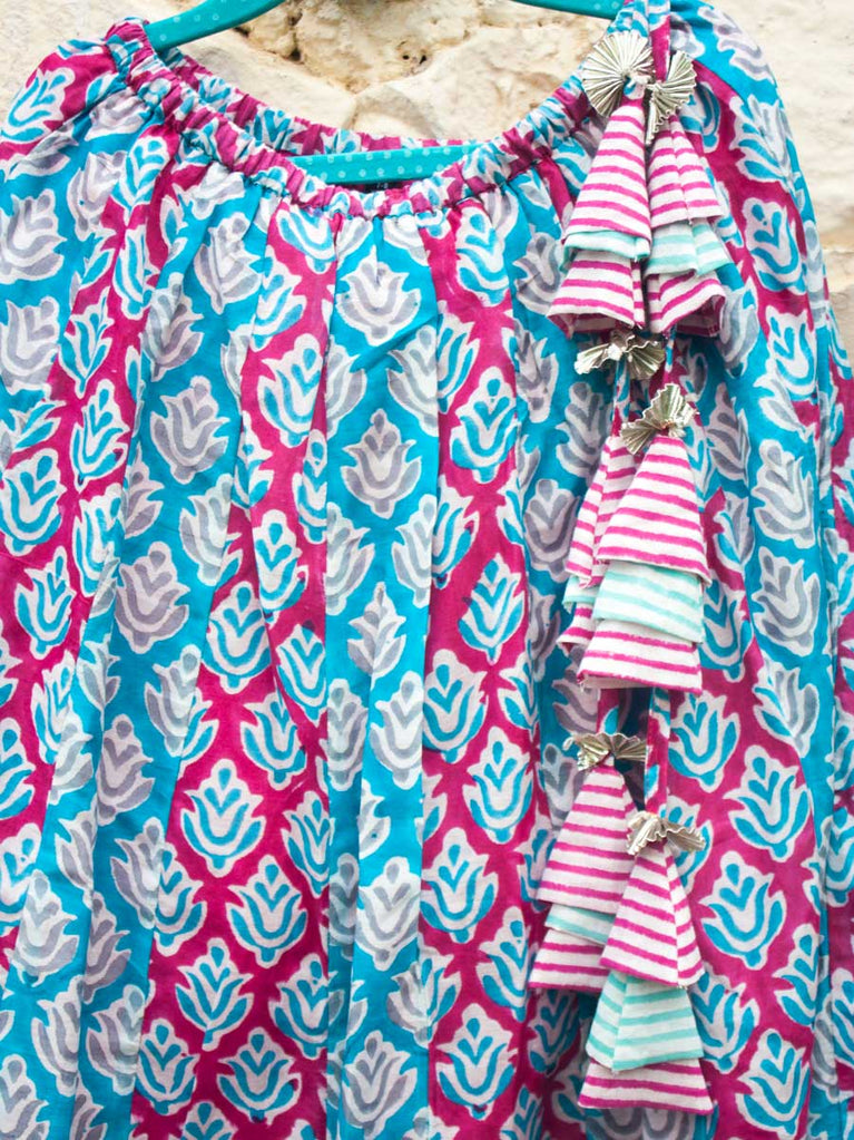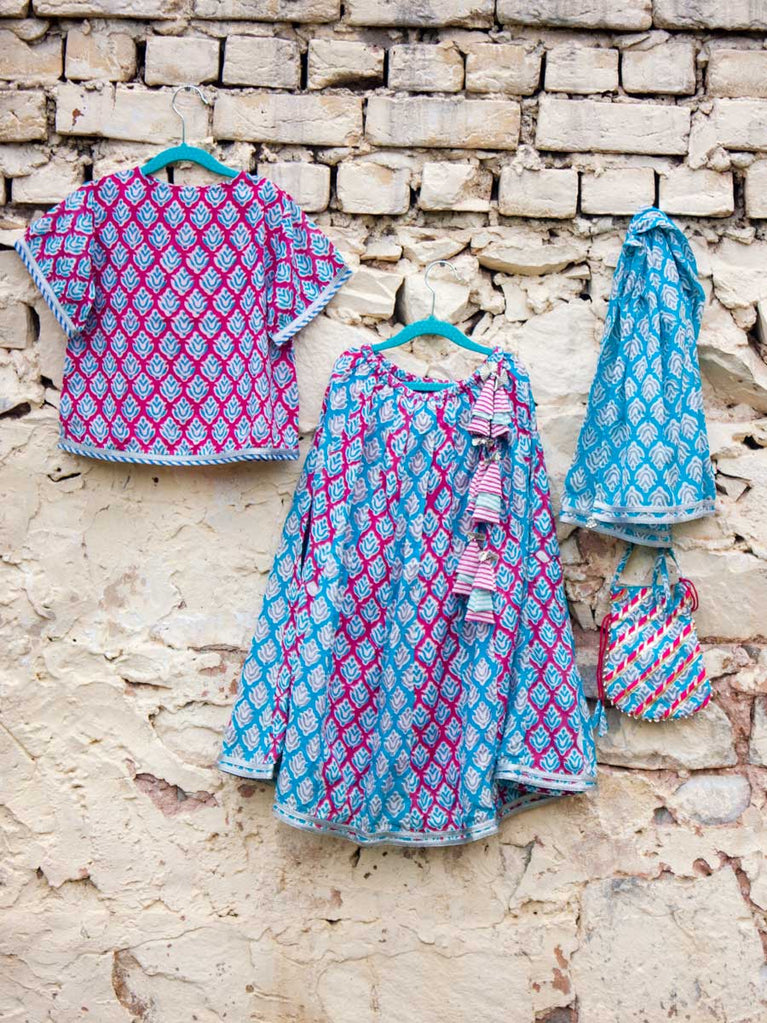 Ocean Wave Chevron Block Print Cotton Lehanga Set of 4