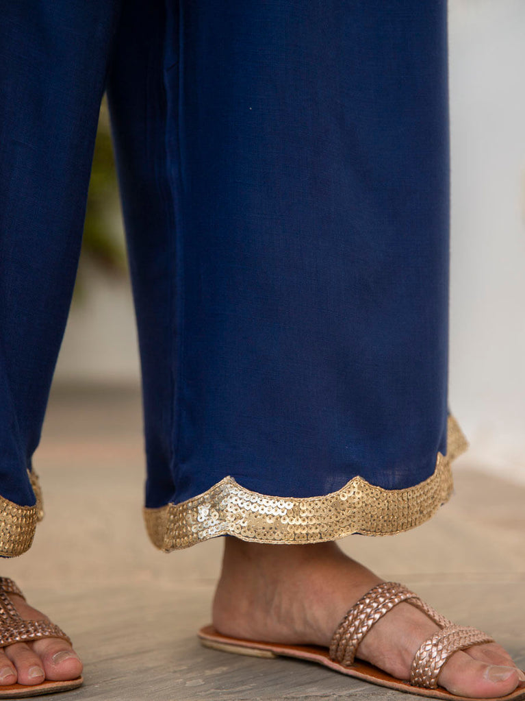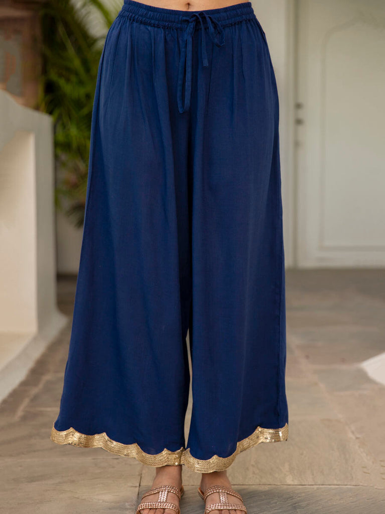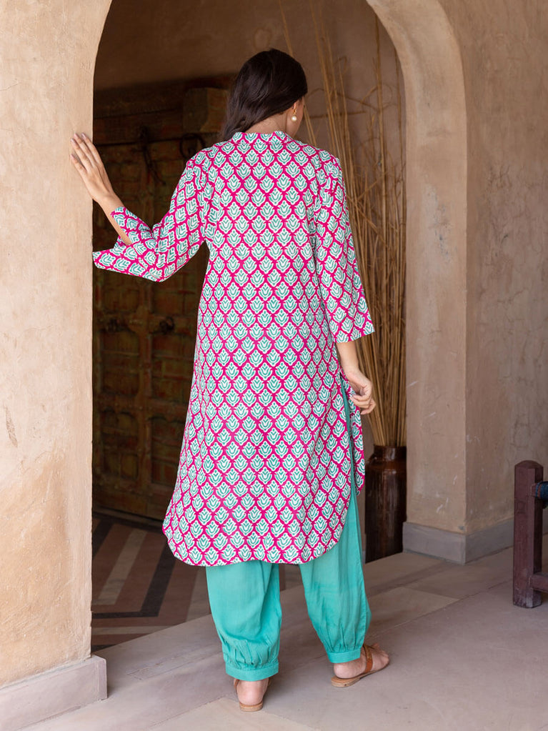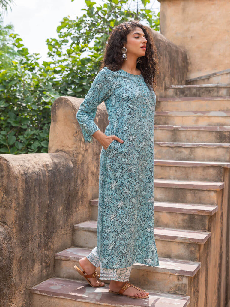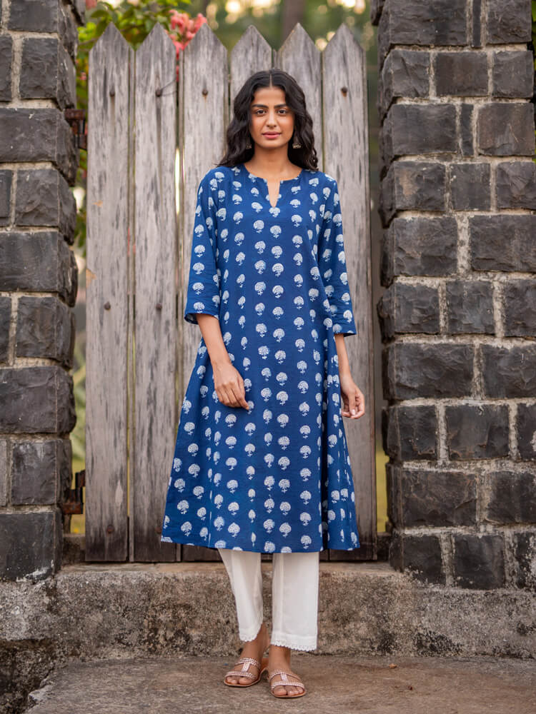 Ocean Wave Chevron Block Print Cotton Lehanga Set of 4