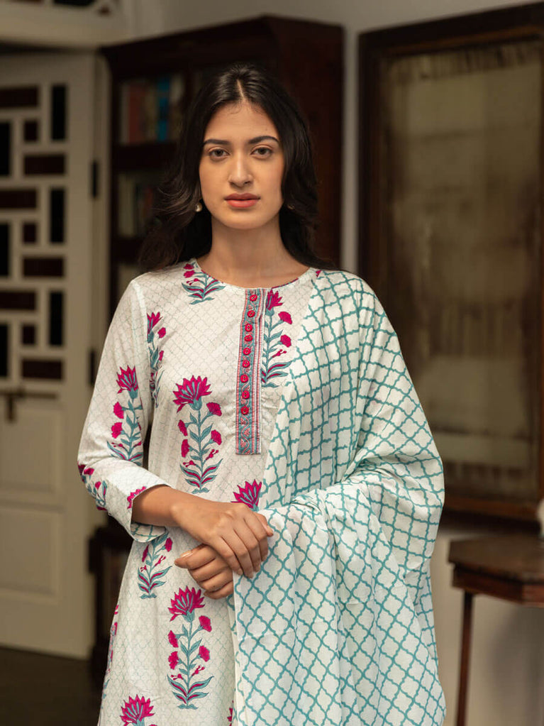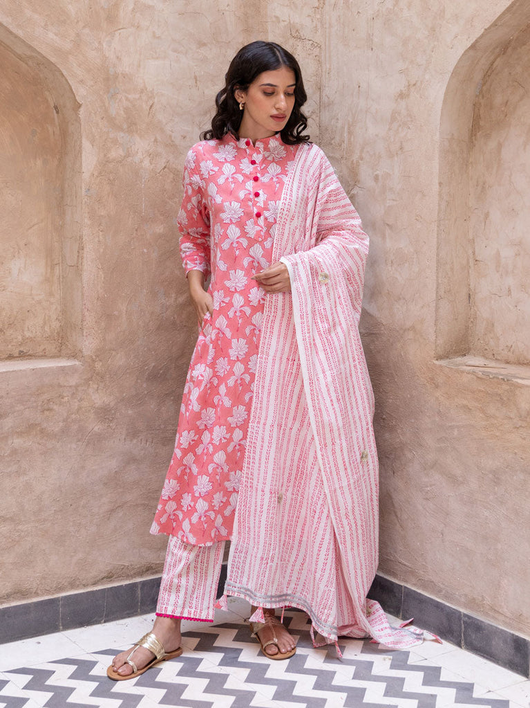 Naaz Block Printed Cotton Silk Lehanga Set of 4