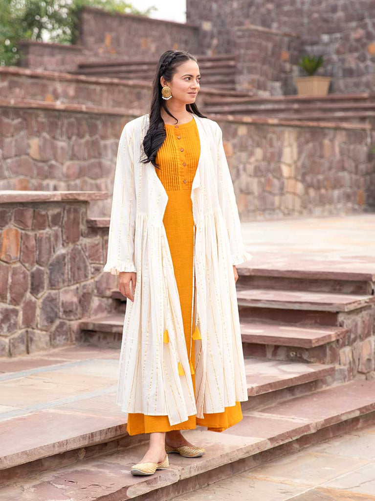 Set of 2- Sunheri Pintuck Dress With Angrakha Jacket
