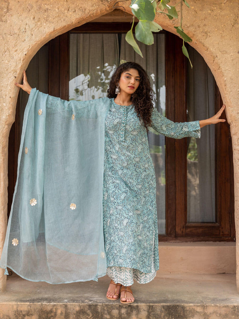 Set of 3 - Bhumi Cotton Kurta, Palazzo and Dupatta