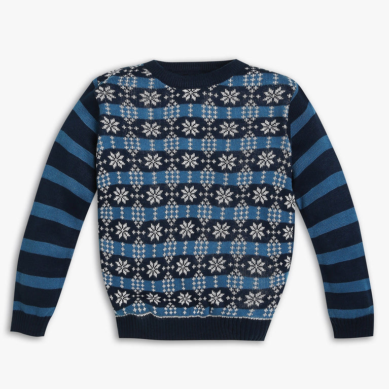 These solid pattern sweater has crew neck and full sleeve. Made from acrylic, your kid's feel comfortable wearing the product.