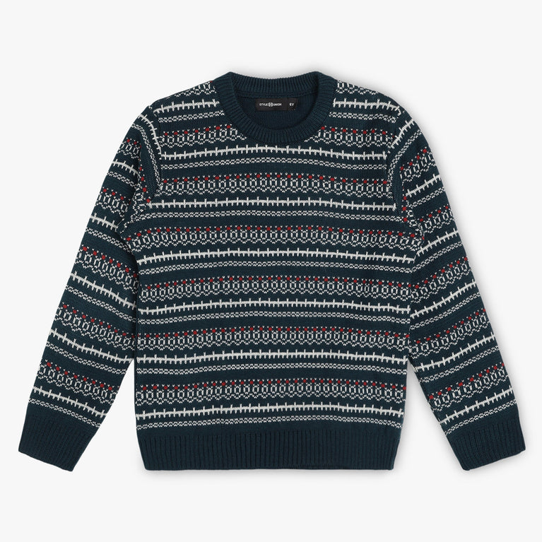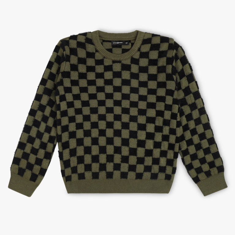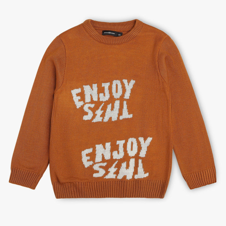 Wrap your little one in warmth and style with our Boys Crew Neck Sweater. Crafted from 100% acrylic, this sweater offers a cozy embrace that keeps the chill at bay. The structured knit pattern adds a touch of sophistication, making it perfect for both casual outings and special occasions.