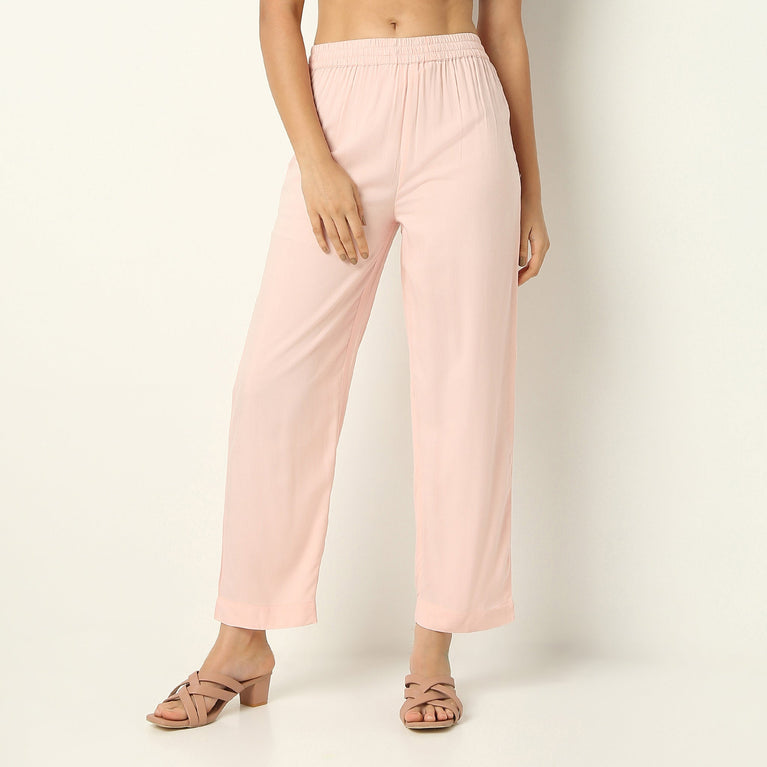 Get Styled For The Friday Office Look In This Statement Modern kurta Set. The Set Includes Solid Purple Straight kurta In V-Neck. It Is Coordinated With Light Pink Straight Palazzo.