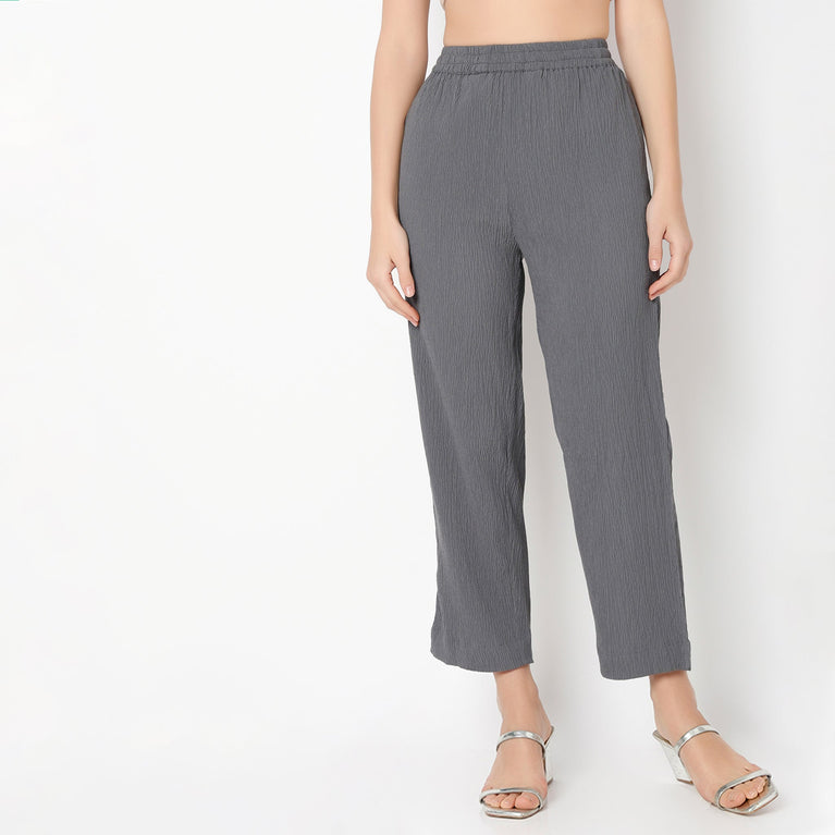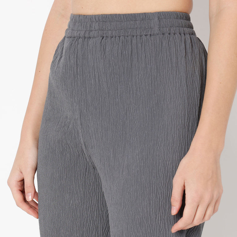 Your Evening Date Plan Is Sorted With This Chic And Elegant kurta Set. The Set Includes Solid Purple kurta With Thread Embroidery On Yoke And Pink Straight Palazzo In High-Rise With Elasticated Waistband.