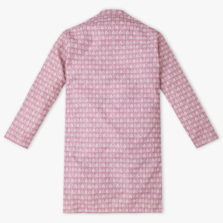 These printed pattern kurta with pant set has mandarin collar and full sleeve. Made from polyester, your kid's feel comfortable wearing the product.