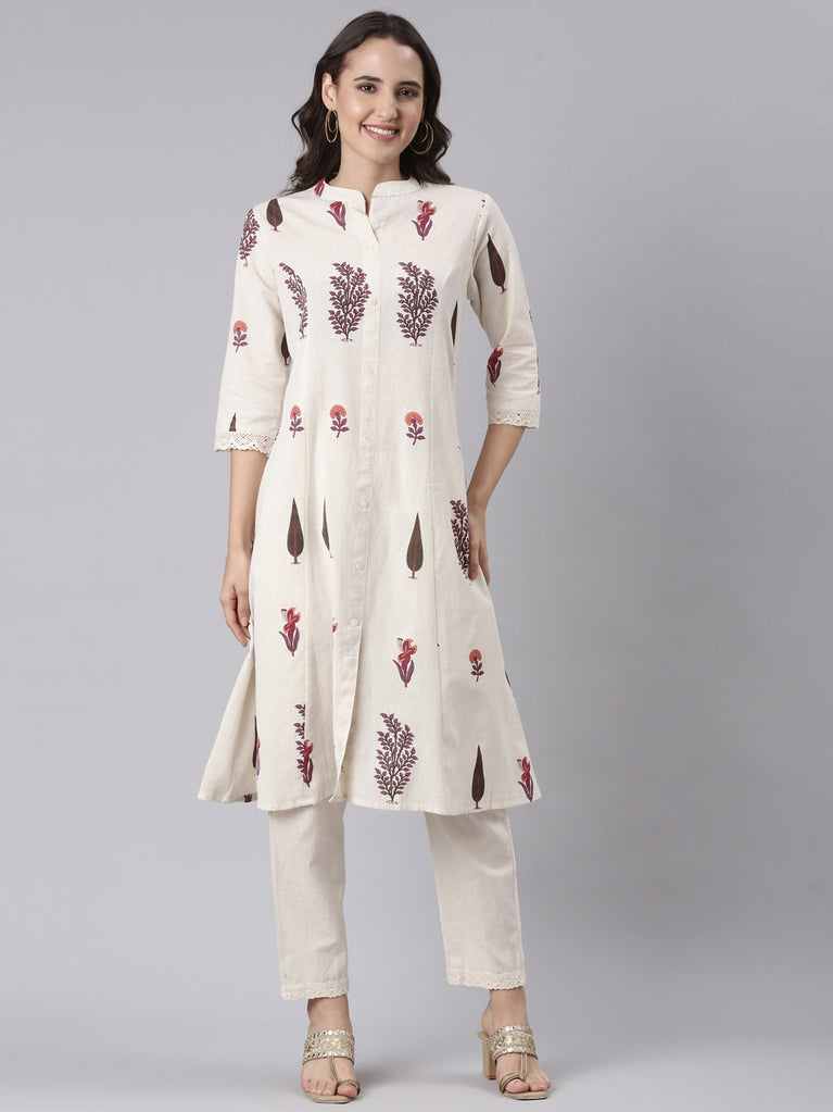 Elevate your wardrobe with this cream flex block print two-piece set, designed for timeless elegance. Crafted with meticulous attention to detail, the subtle block print adds an artful touch while ensuring breathable comfort. Perfect for both casual outings and refined gatherings, this set offers effortless style with a sophisticated edge.