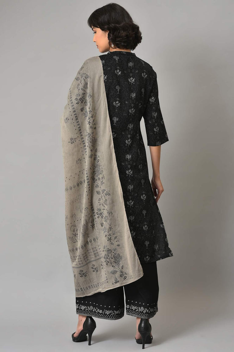 Black Floral Printed kurta With Parallel Pants And Grey Dupatta