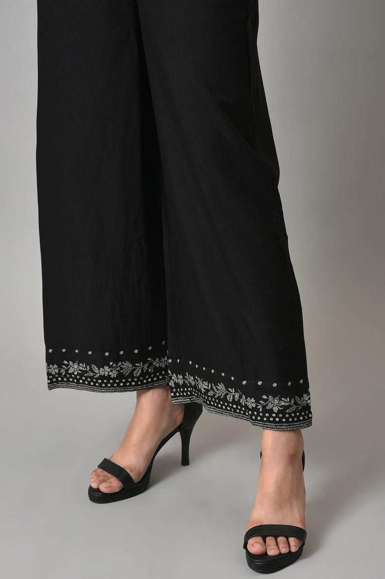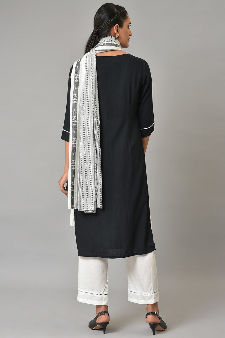 Black Lace Cotton Blend Straight Kurta and Palazzo Set