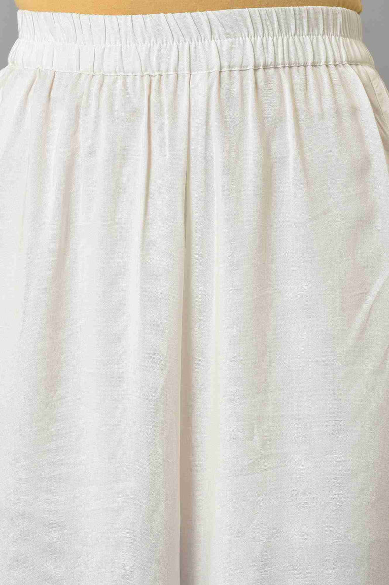 Upgrade Your Wardrobe By Adding This Elegant And Chic Ethnic Set. The Set Includes Black Sleeveless kurta In Straight Silhouette. It Has Floral Motifs And Comes In V-Neck With Band. It Is Coordinated With Red Straight Palazzo Pants In High-Rise And Elasticated Waistband.