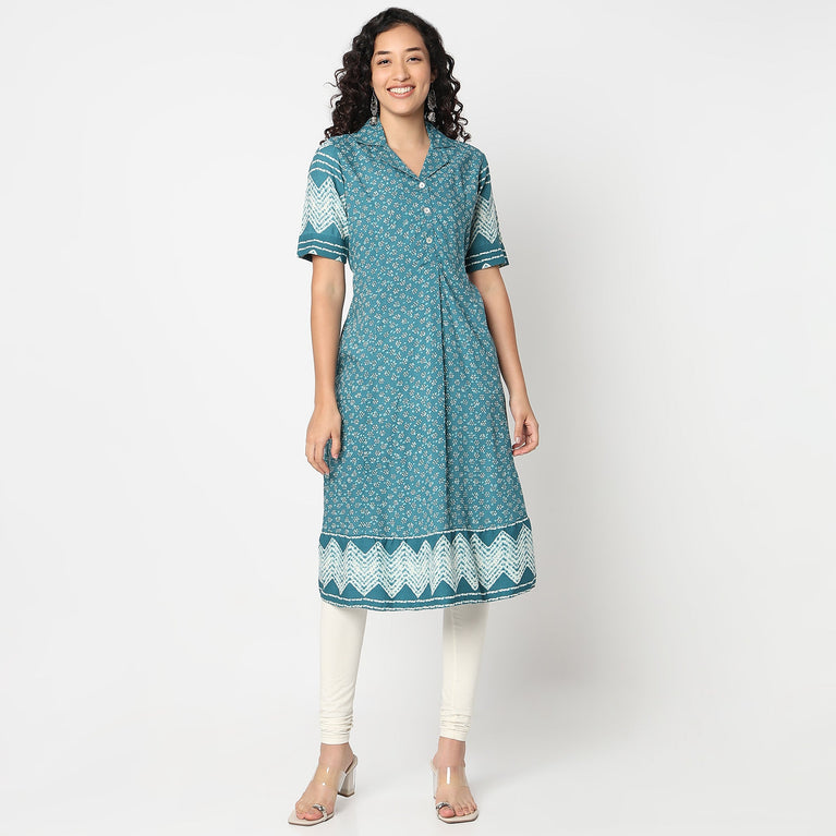 Discover the perfect blend of comfort and style with this fusion kurta from Aurelia. Crafted from a premium cotton-flax blend, this below-knee length kurta offers breathability and durability. The a-line silhouette flatters various body types, while the v-neck adds a touch of elegance. The three-quarter sleeves provide versatility for different seasons. Ideal for casual occasions, this woven kurta in a striking blue hue is a must-have addition to your wardrobe. The cotton-flax composition, consisting of 90% cotton and 10% flax, ensures a soft feel against the skin and easy maintenance. Embrace the fusion of traditional and contemporary design elements in this Aurelia kurta, perfect for the modern woman seeking both comfort and fashion-forward style.