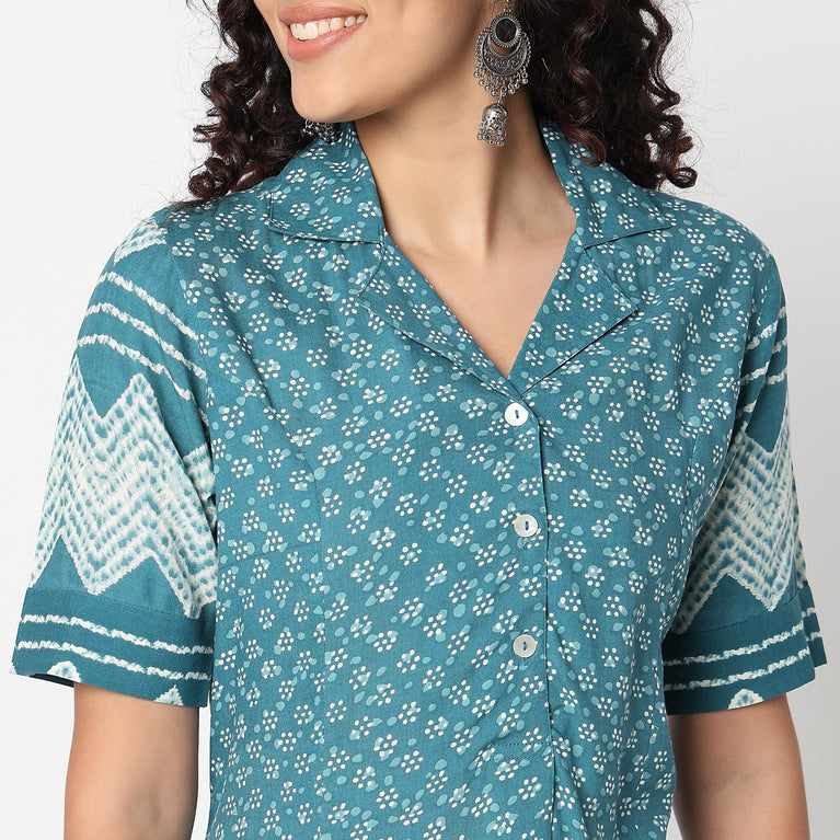 Camp Collar Knee Length Three-Fourth Sleeve Straight Fit Printed Kurta