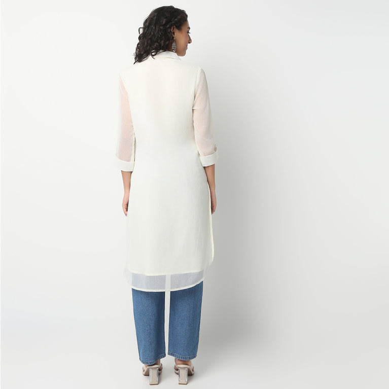 Calf Length Three-Fourth Sleeve Straight Fit Embroidered Kurta