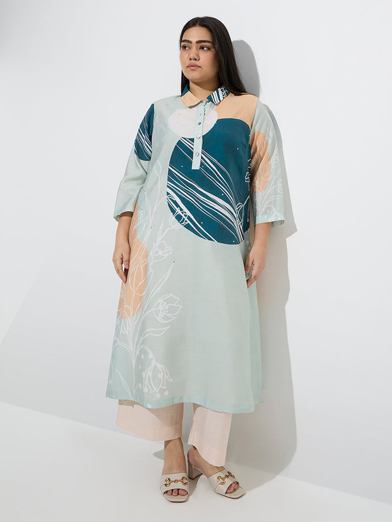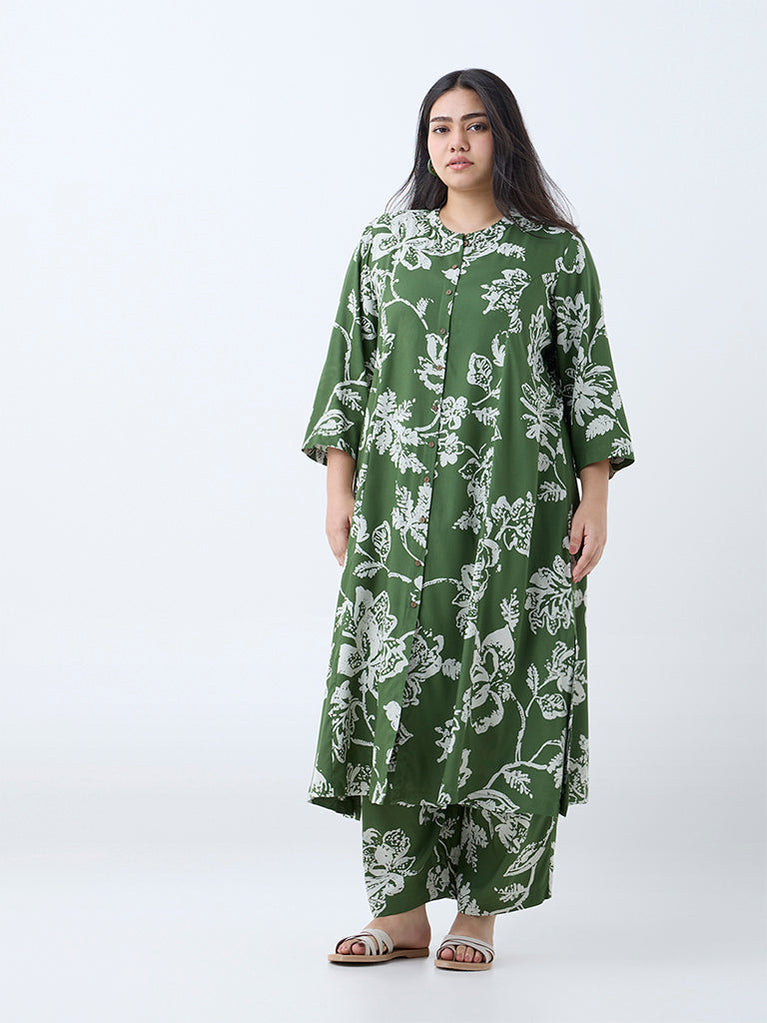 Diza Green Floral Design A-Line Kurta