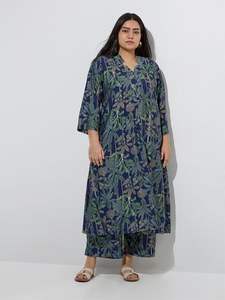 Diza Navy Botanical Design A-Line Kurta