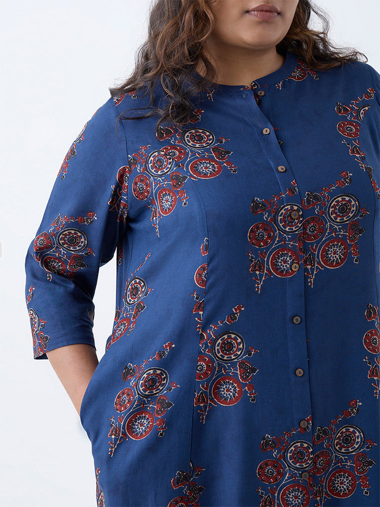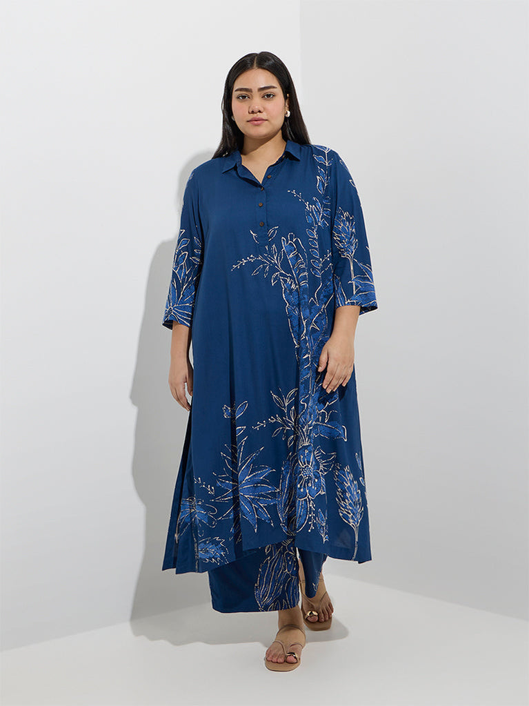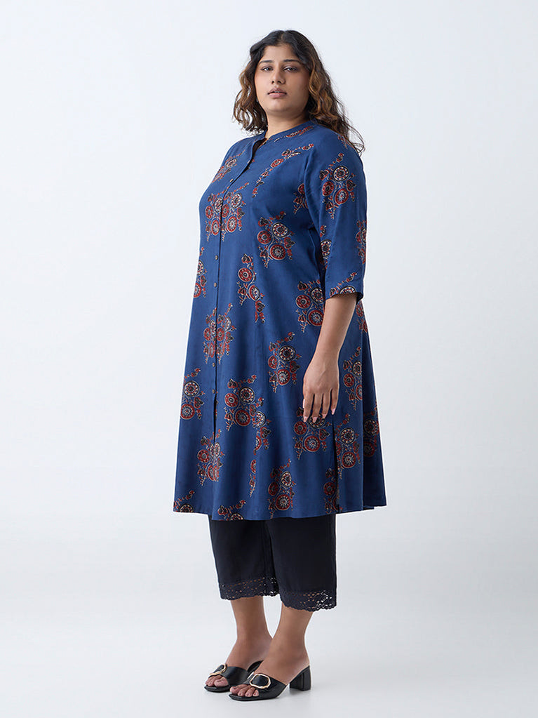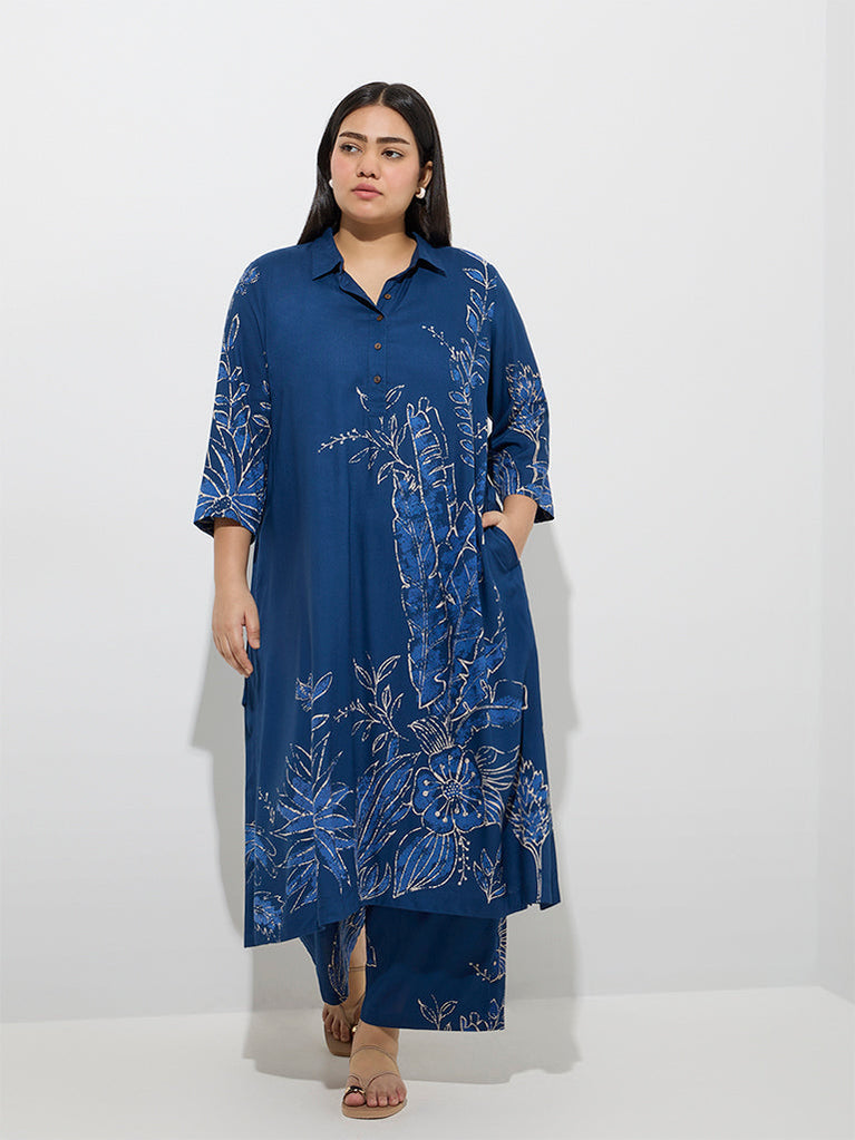 Diza Indigo Botanical Pattern A-Line Kurta