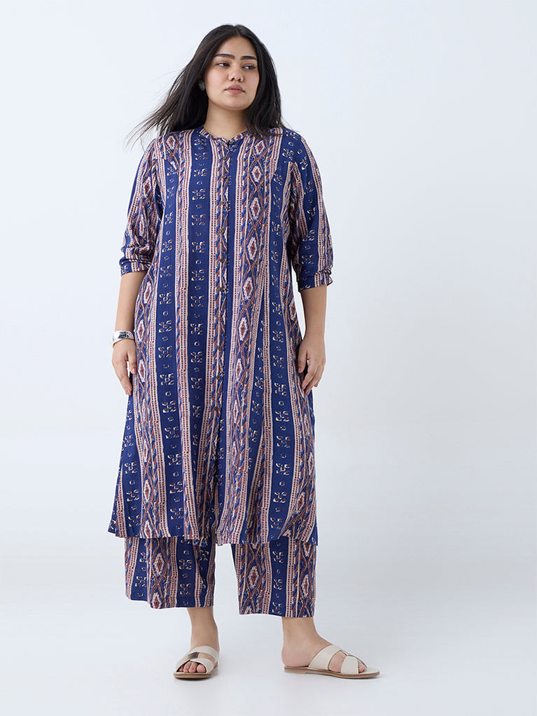 Diza Indigo Printed A-Line Kurta