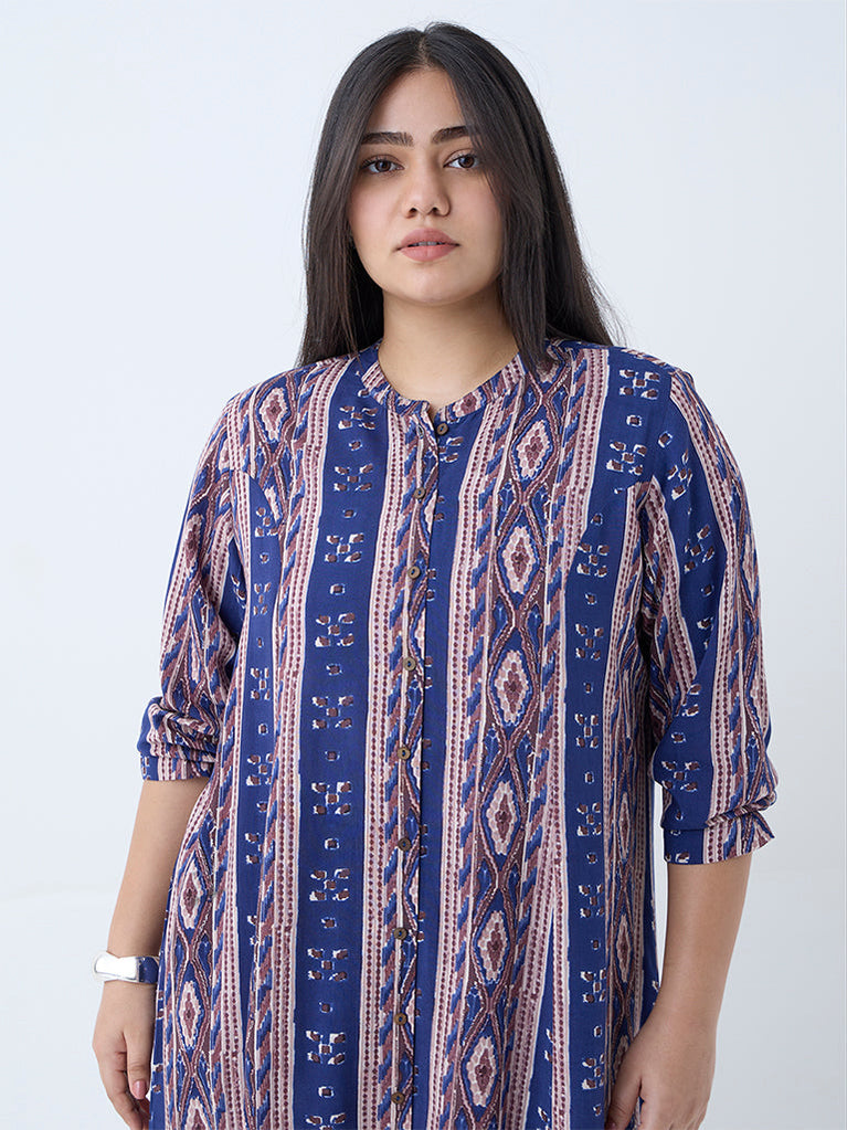 Refresh your everyday line-up with this indigo kurta from Diza. Decked with stripes in an A-line silhouette, this lightweight piece features a band collar that flows into a button placket, along with three-quarter sleeves and a handy side pocket for added ease.