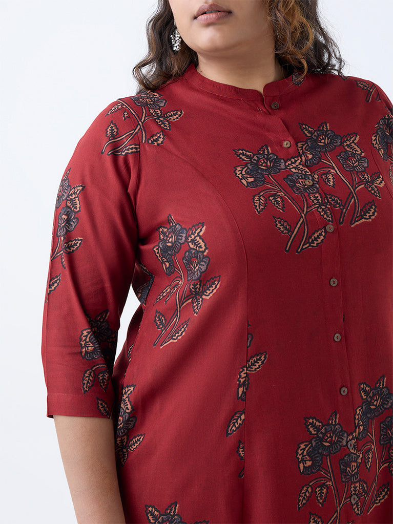 Diza Maroon Botanical Pattern A-Line Kurta