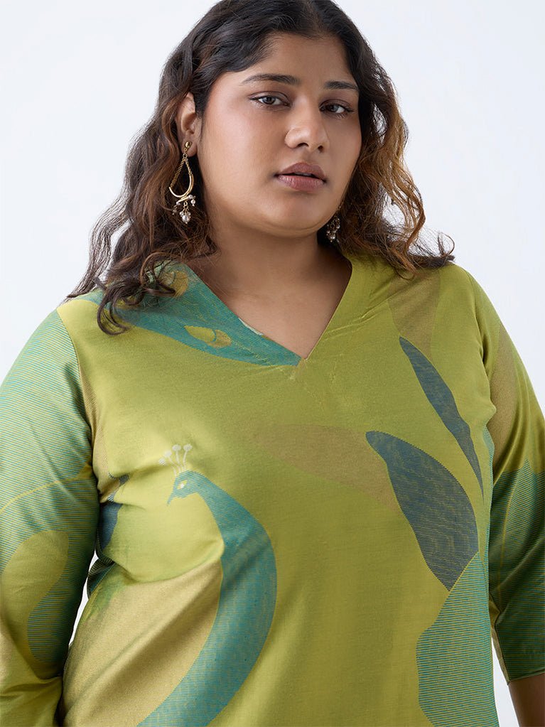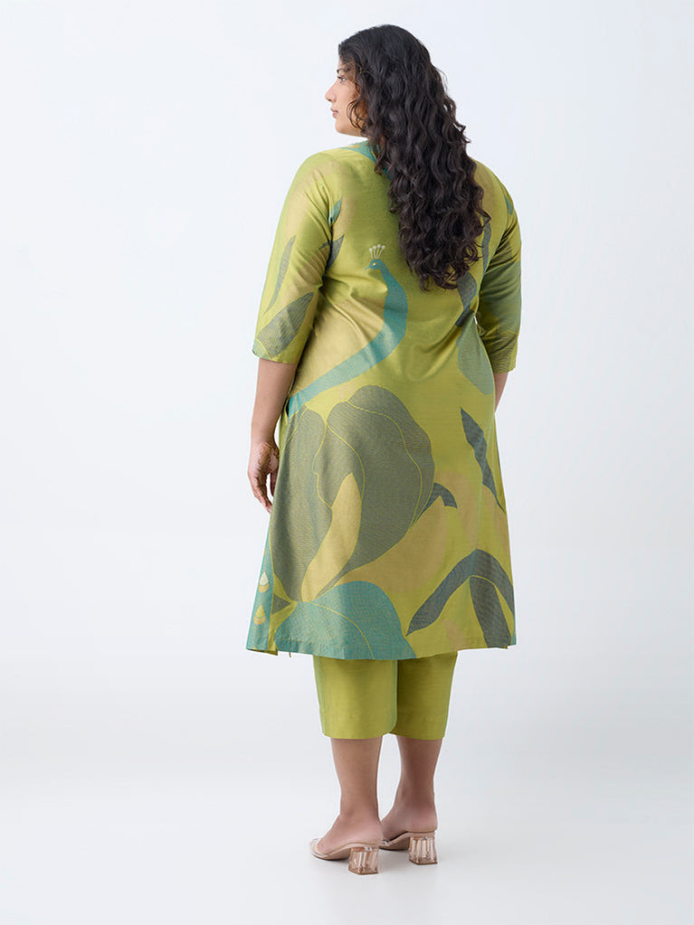Diza Lime Botanical Design A-Line Kurta