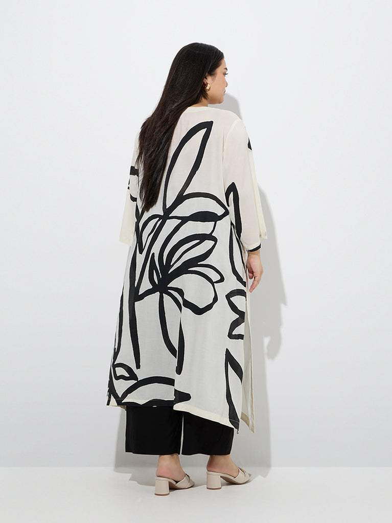 Diza Off-White Botanical Design Cotton-Blend A-Line Kurta