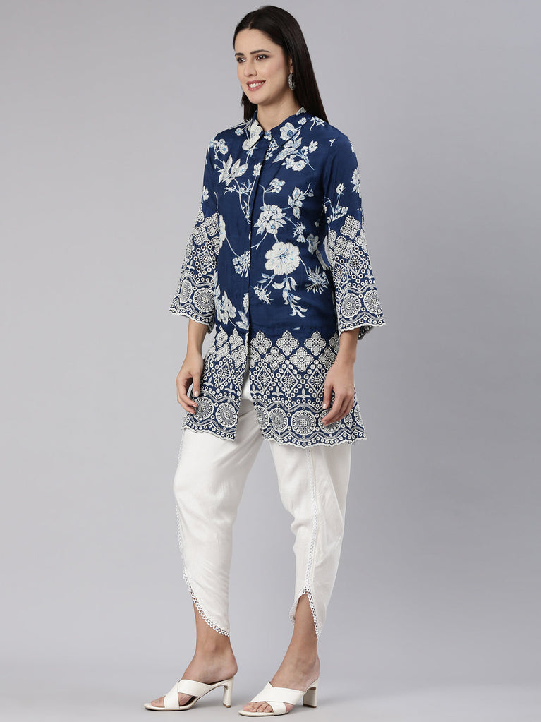 Indulge In The Luxury Of Neeru's Blue Floral Kurtas.