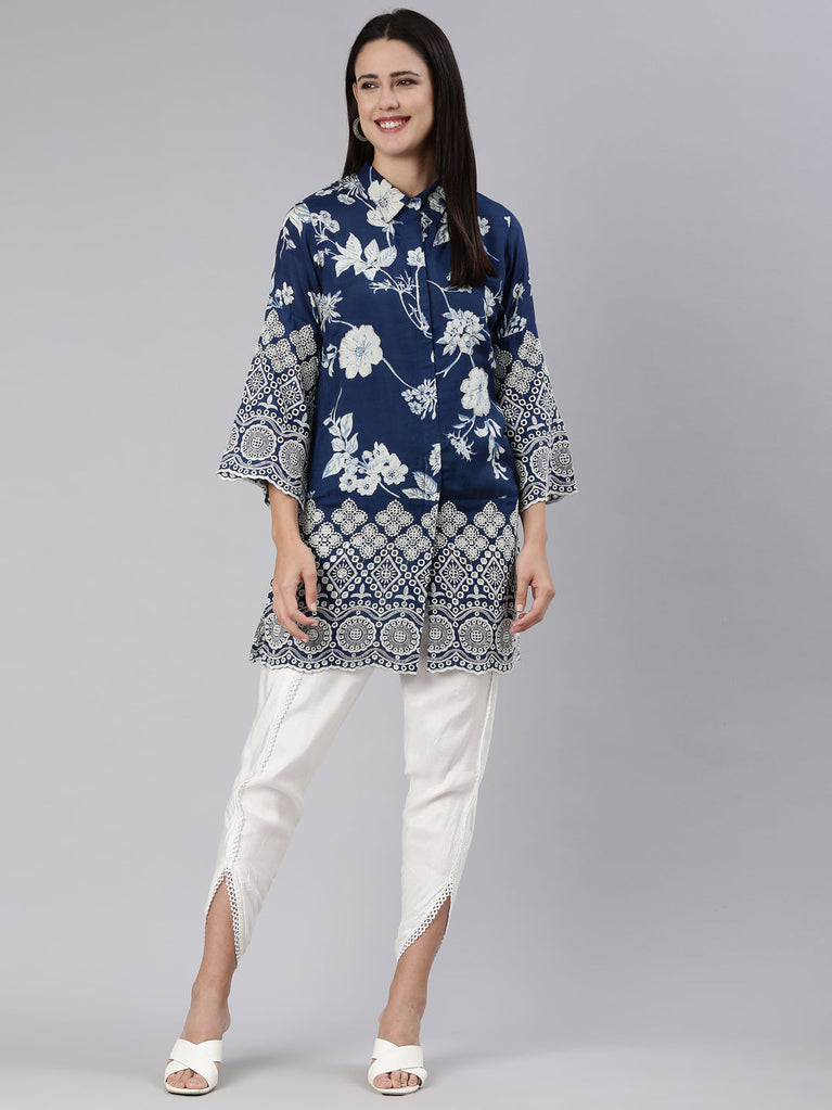 Neeru's Blue Floral Straight Kurtas - Premium, Elegant, And Exclusive.