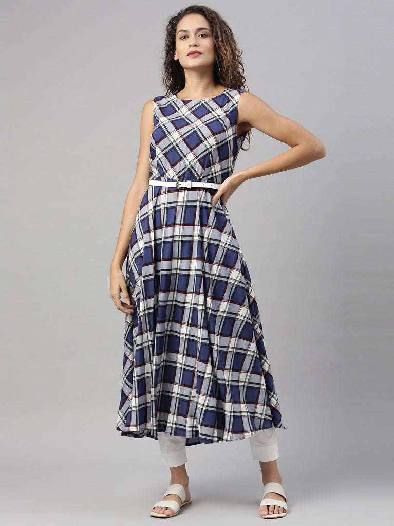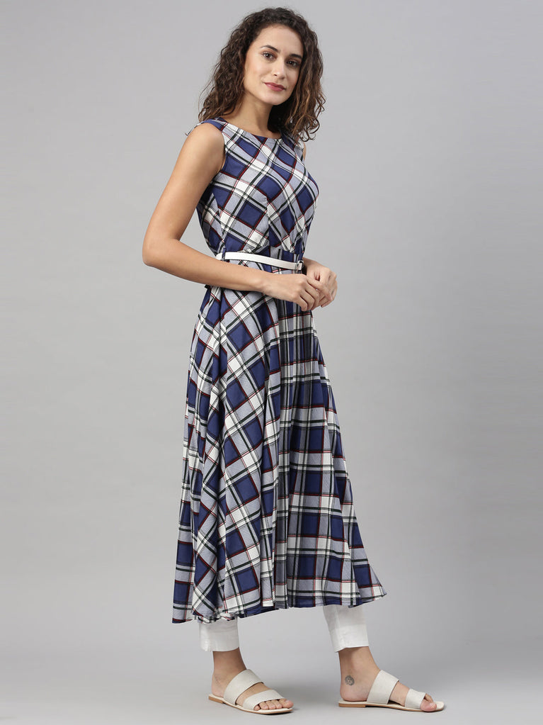 Neeru's Women Blue Checked Kurta
