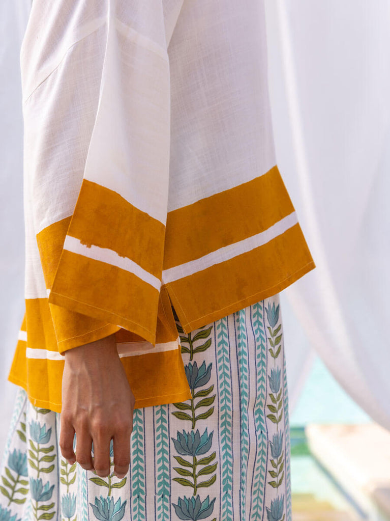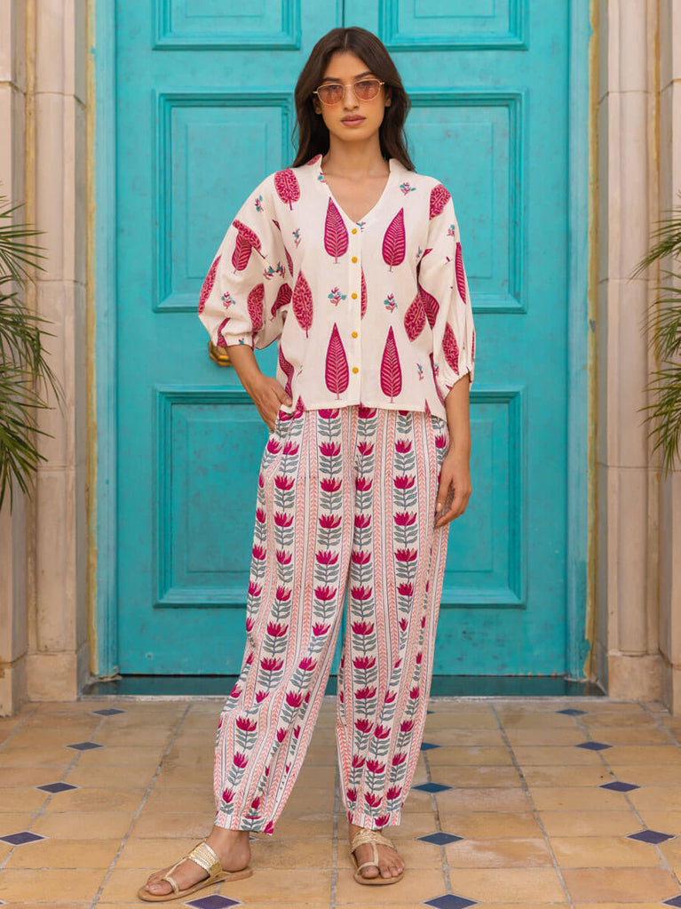 Set of 2 - Tuscan Sun Hand Block Printed Kaftan Top and Lantern Pants