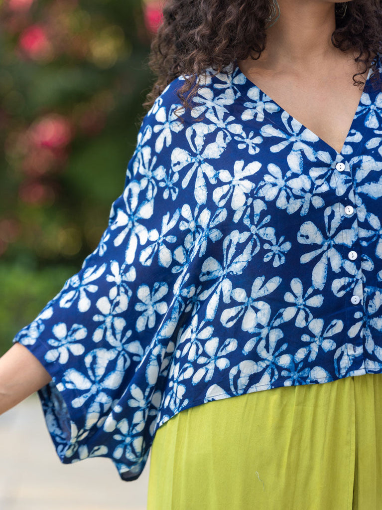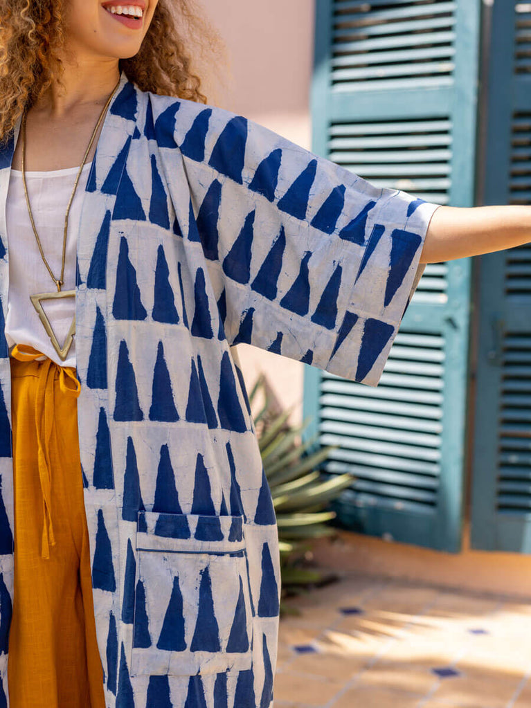 Set of 2 - Mimosa Indigo Dabu Kimono Jacket and Palazzo Pants