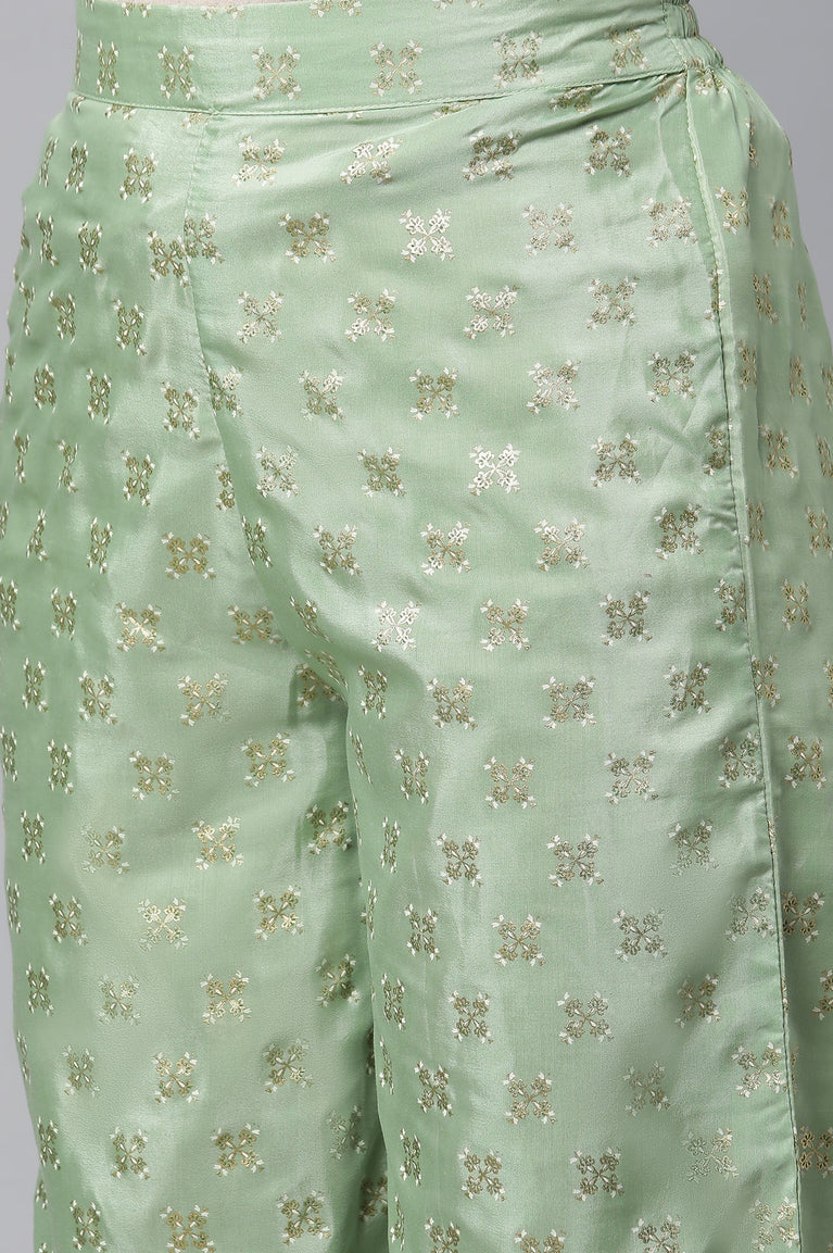 Blue Printed kurta, Green Palazzo and Dupatta Set