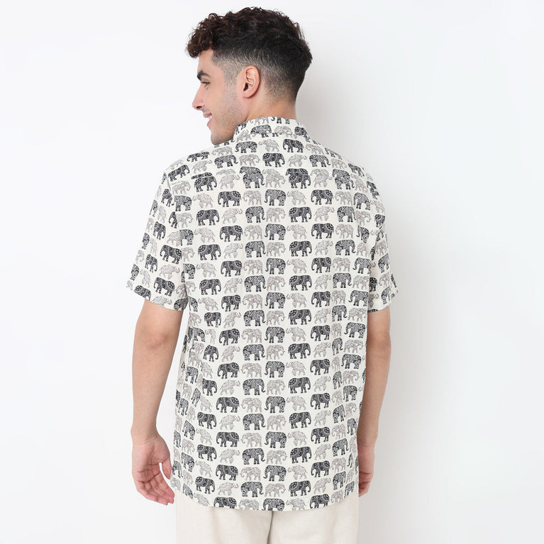 Camp Collar Half Sleeve Short Length Relaxed Fit Cuban Printed Shirt