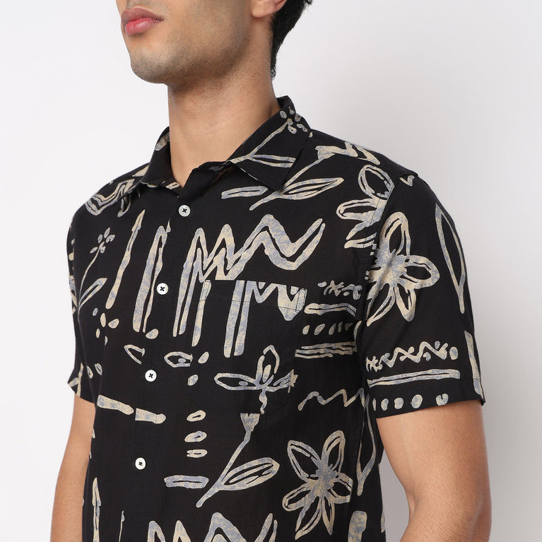 Camp Collar Half Sleeve Relaxed Fit Cuban Printed Shirt