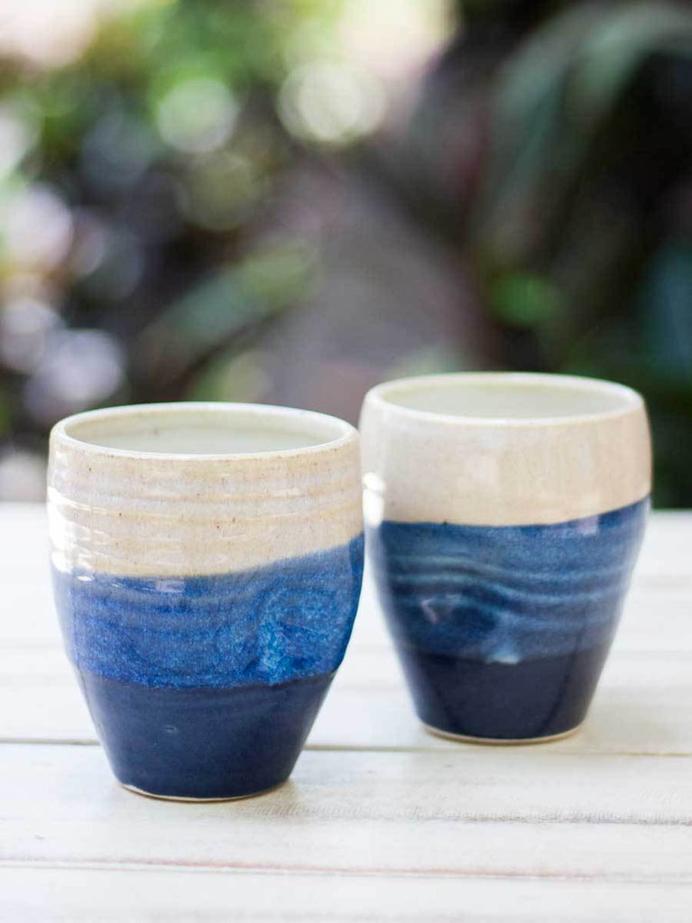 Set of 2 - Indigo Trifecta Dimpled Hand-Thrown Ceramic Tumbler