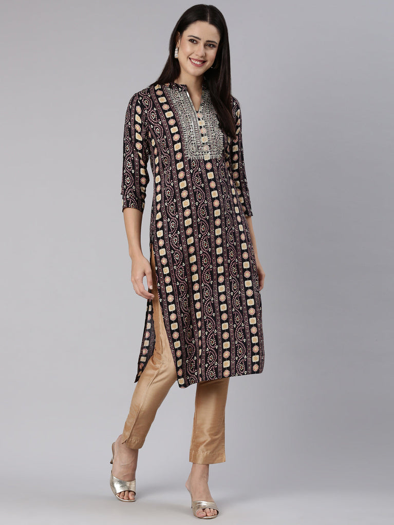 Style Up Your Wardrobe With The Irresistibly Chic Neeru's Black Regular Straight Printed Kurtas!
