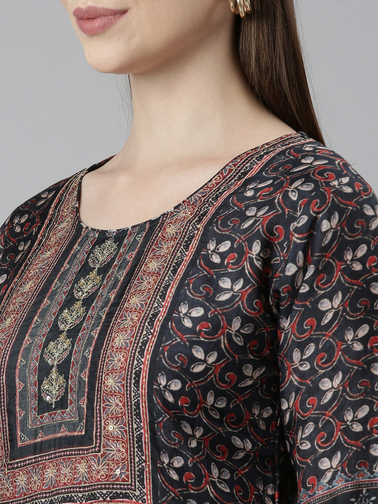 Neeru's Black Regular Straight Printed Kurta The Perfect Pick For A No-Fuss Yet Chic Look That'Ll Keep You Looking Good And Feeling Comfy. Get Ready To Turn Heads!