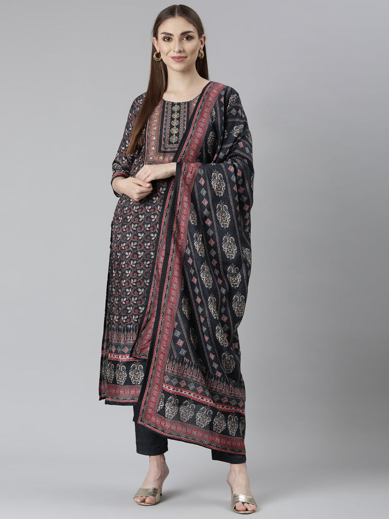 Discover Neeru's Black Regular Straight Floral Readymade Suits For An Exquisite Look.