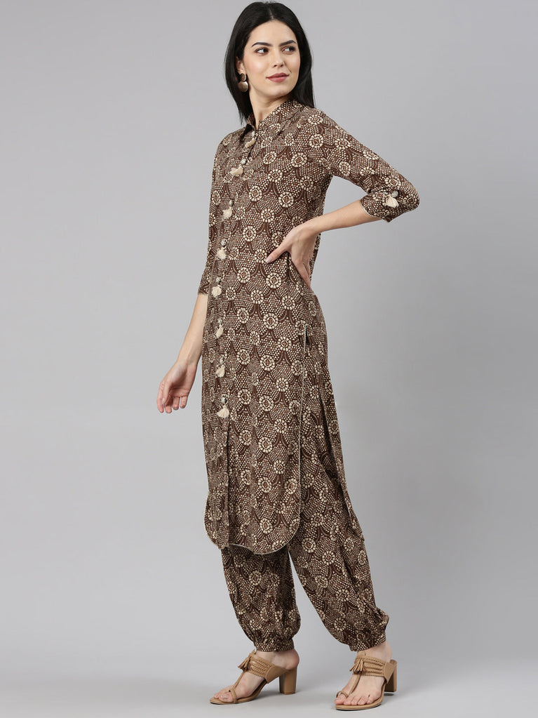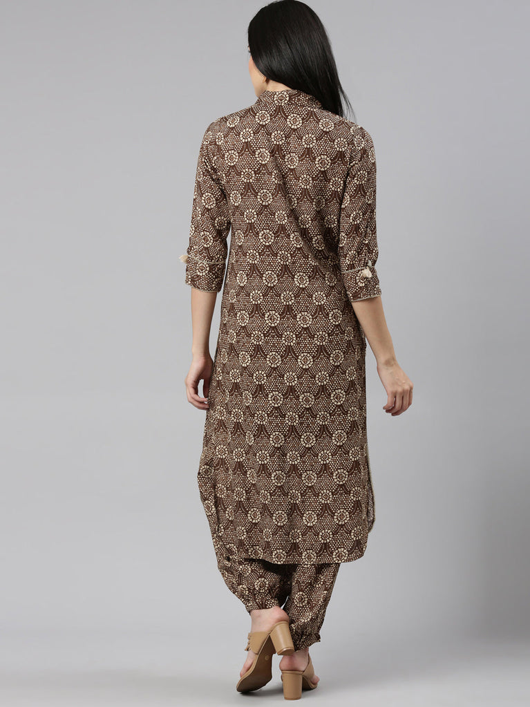 Neeru's Brown Regular Straight Printed Kurta And Salwar