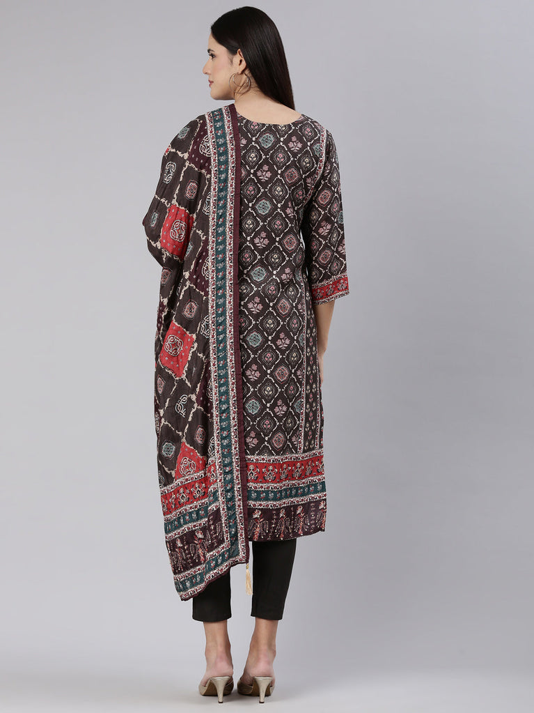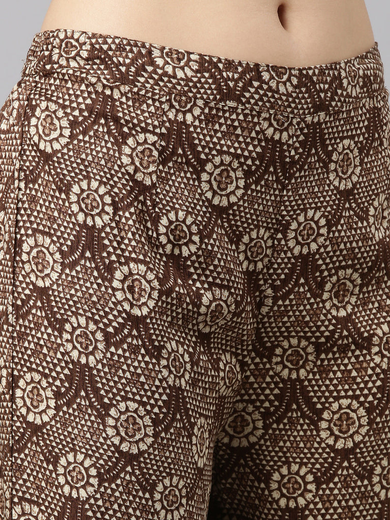 Neeru's Brown Regular, Straight-Cut Printed Readymade suits - A Sophisticated Combination Of Elegance And Style.