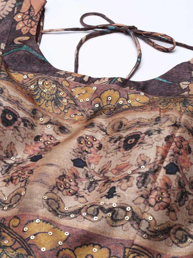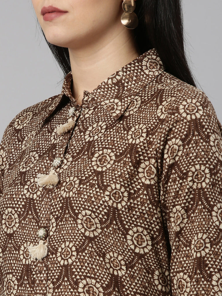 Neeru's Brown Straight Casual Printed Maxi Dresses