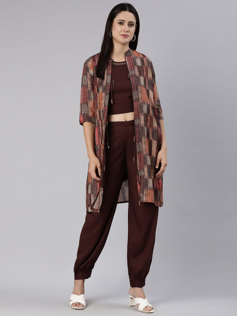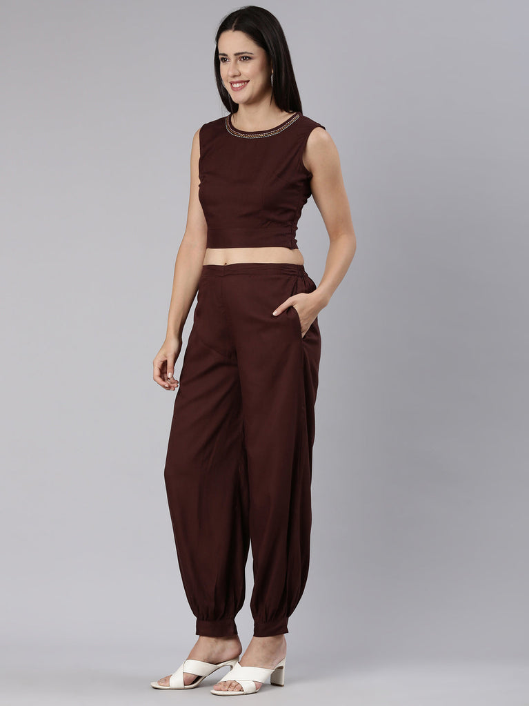 Neeru's Brown Regular Straight Solid Co-Ords Set