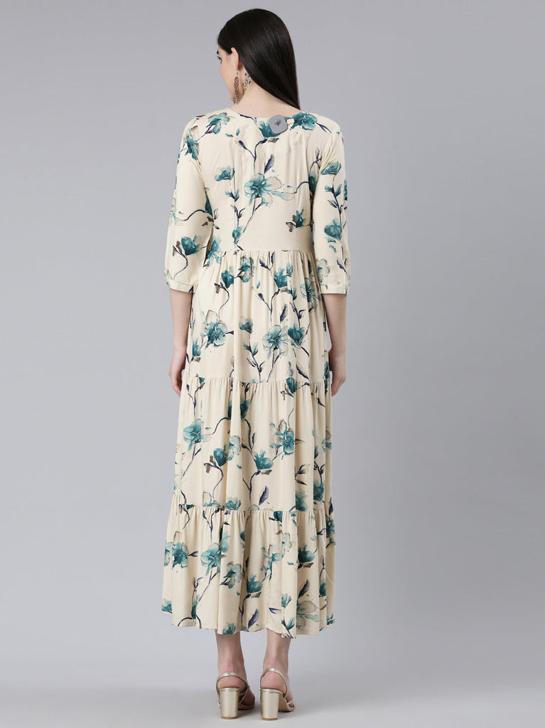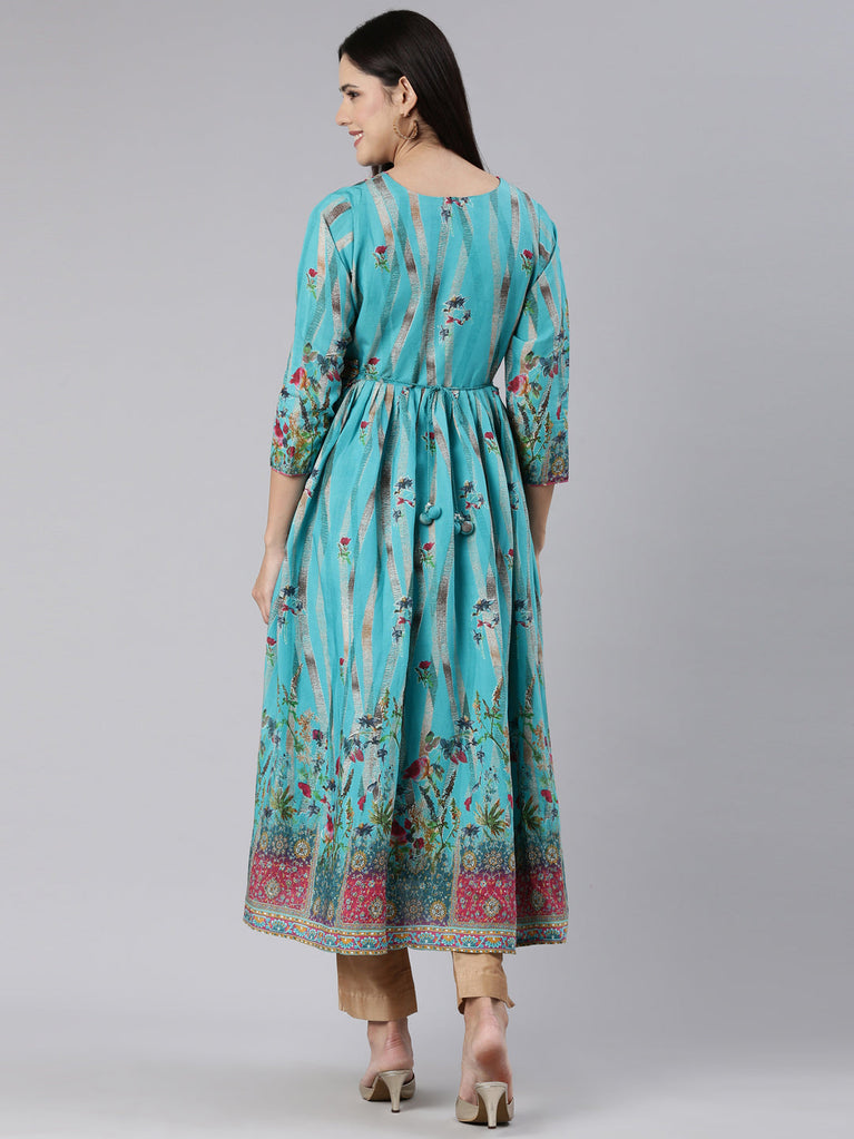 Neeru's Blue Straight Casual Floral Dress