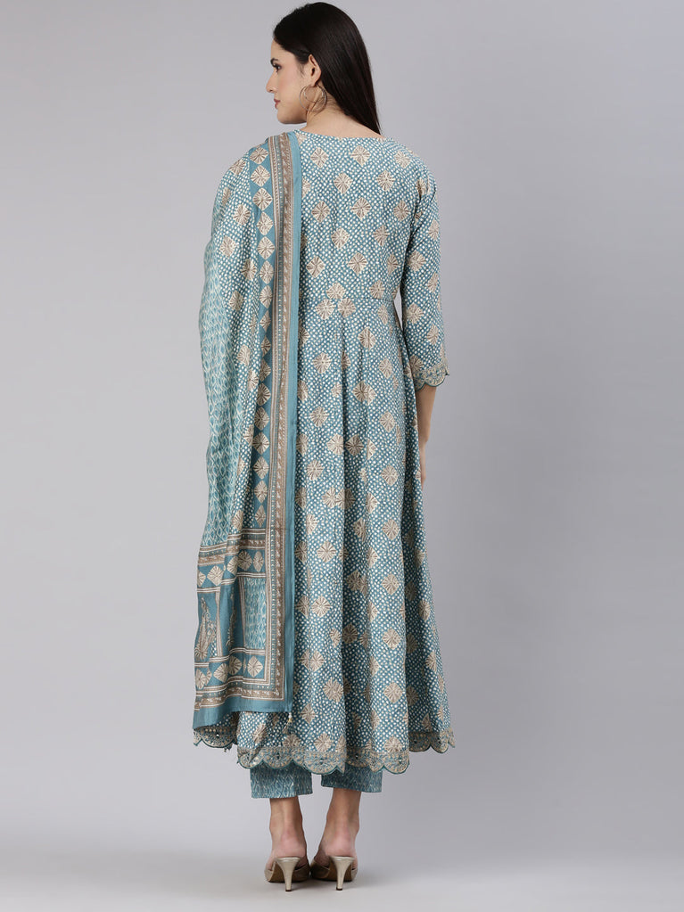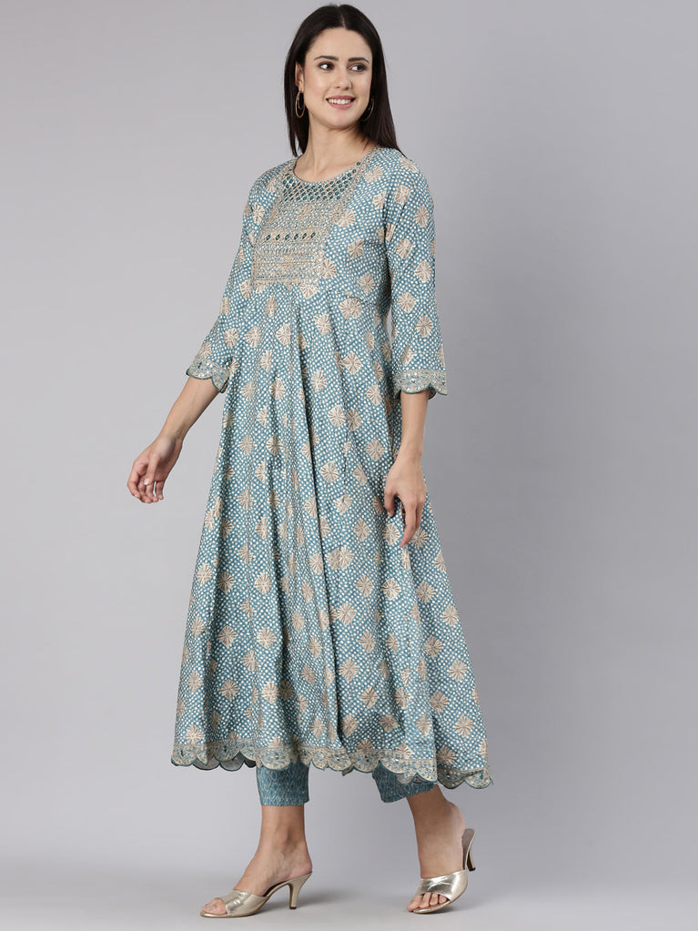 Neeru's Blue Regular Straight Yoke Design Readymade suits