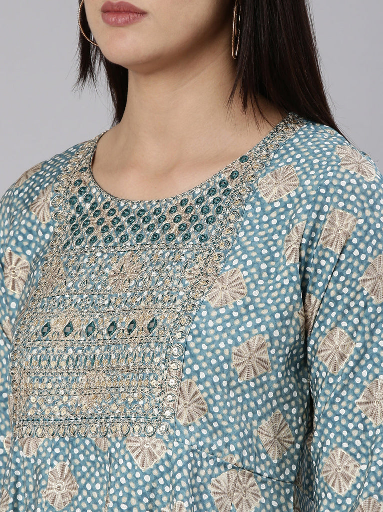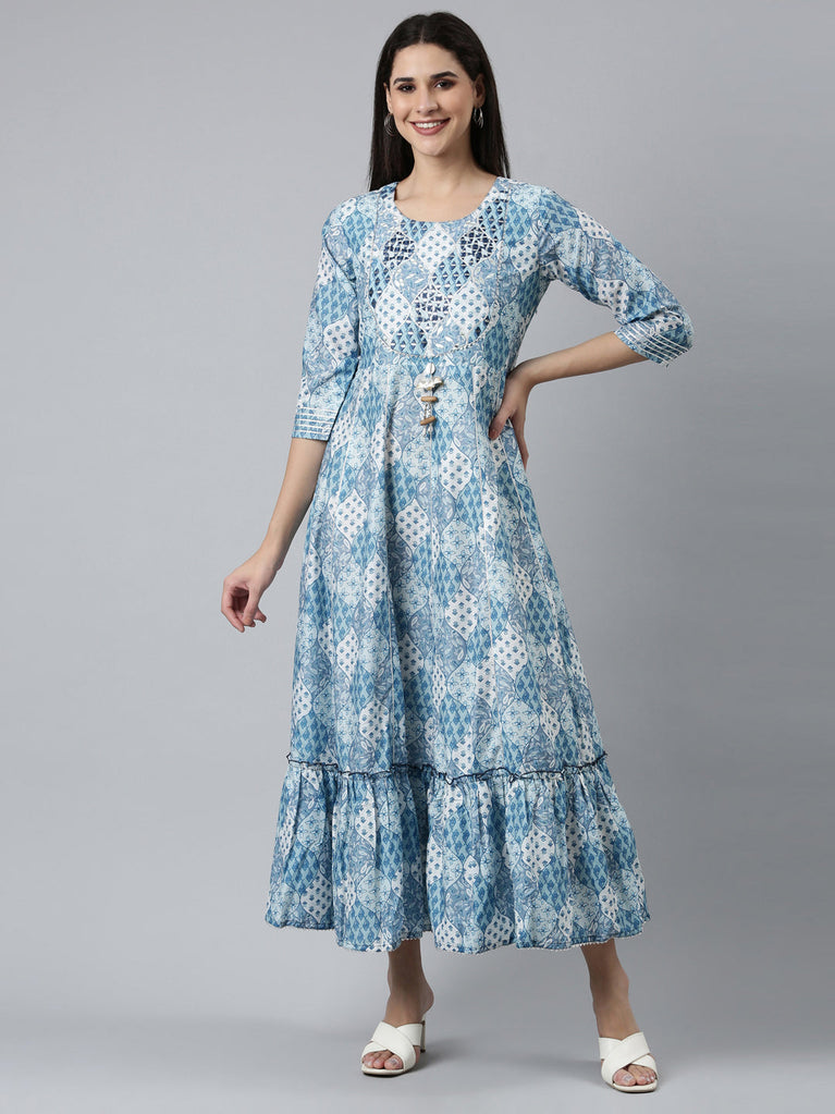 Neeru's Blue Straight Casual Printed Dress
