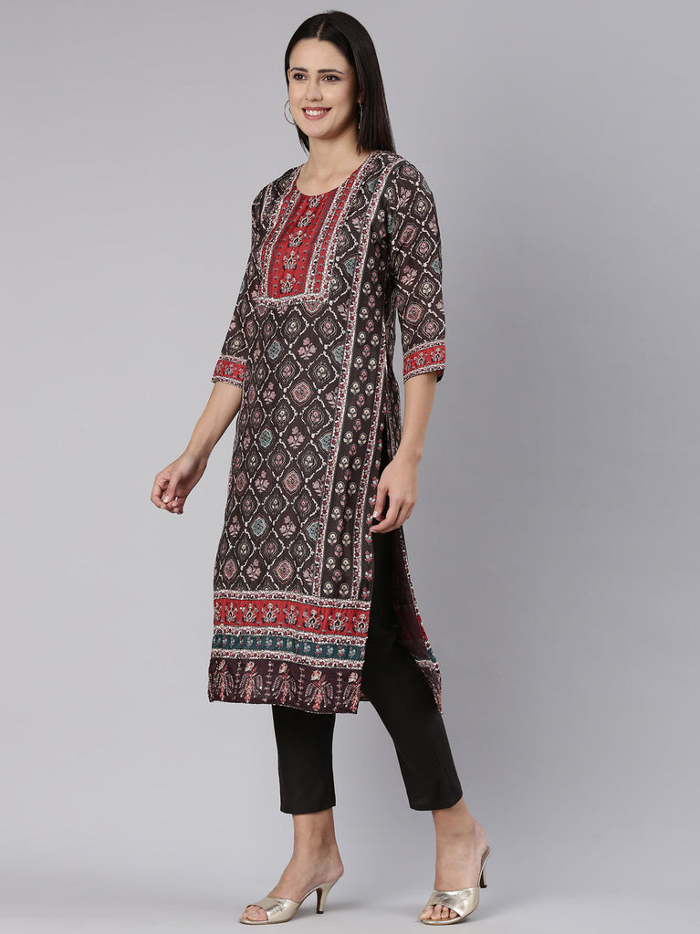 Neeru's Brown Embroidered Straight Kurta.