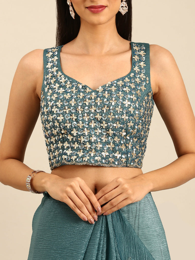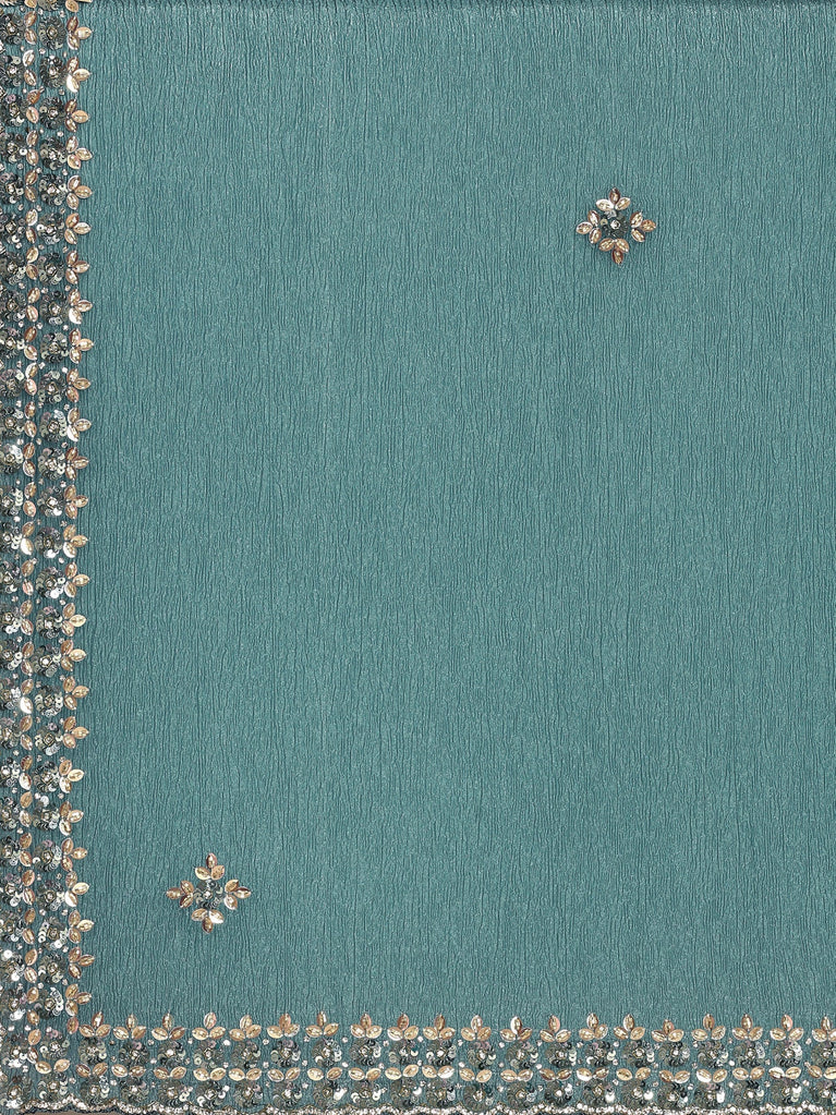 Green Jimmy crushed tissue saree with pearls & sequins embroidery with heavy ready made blouse